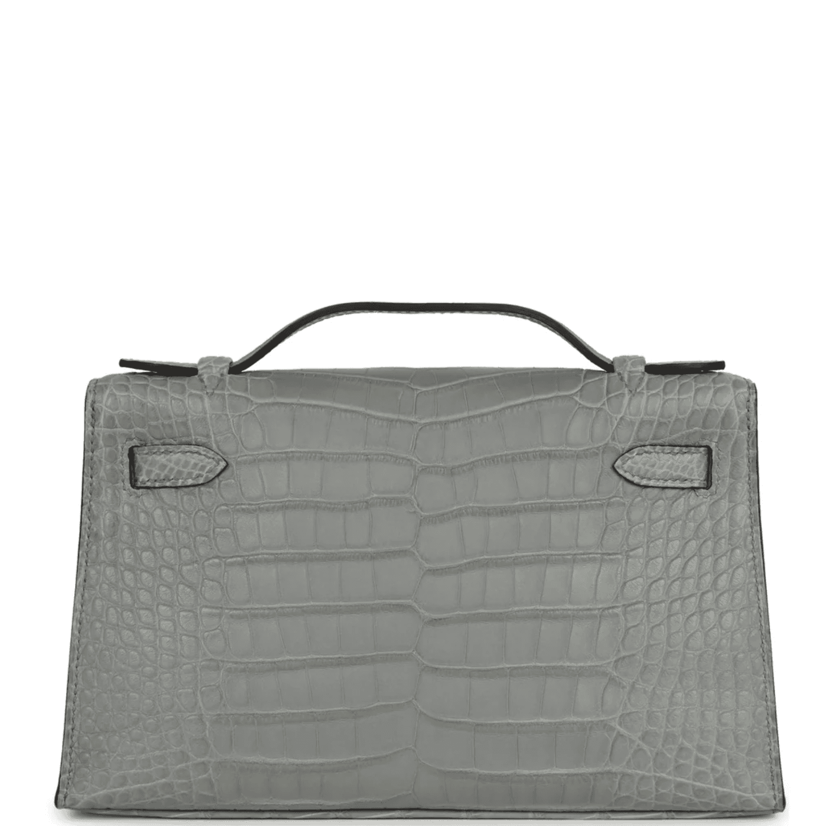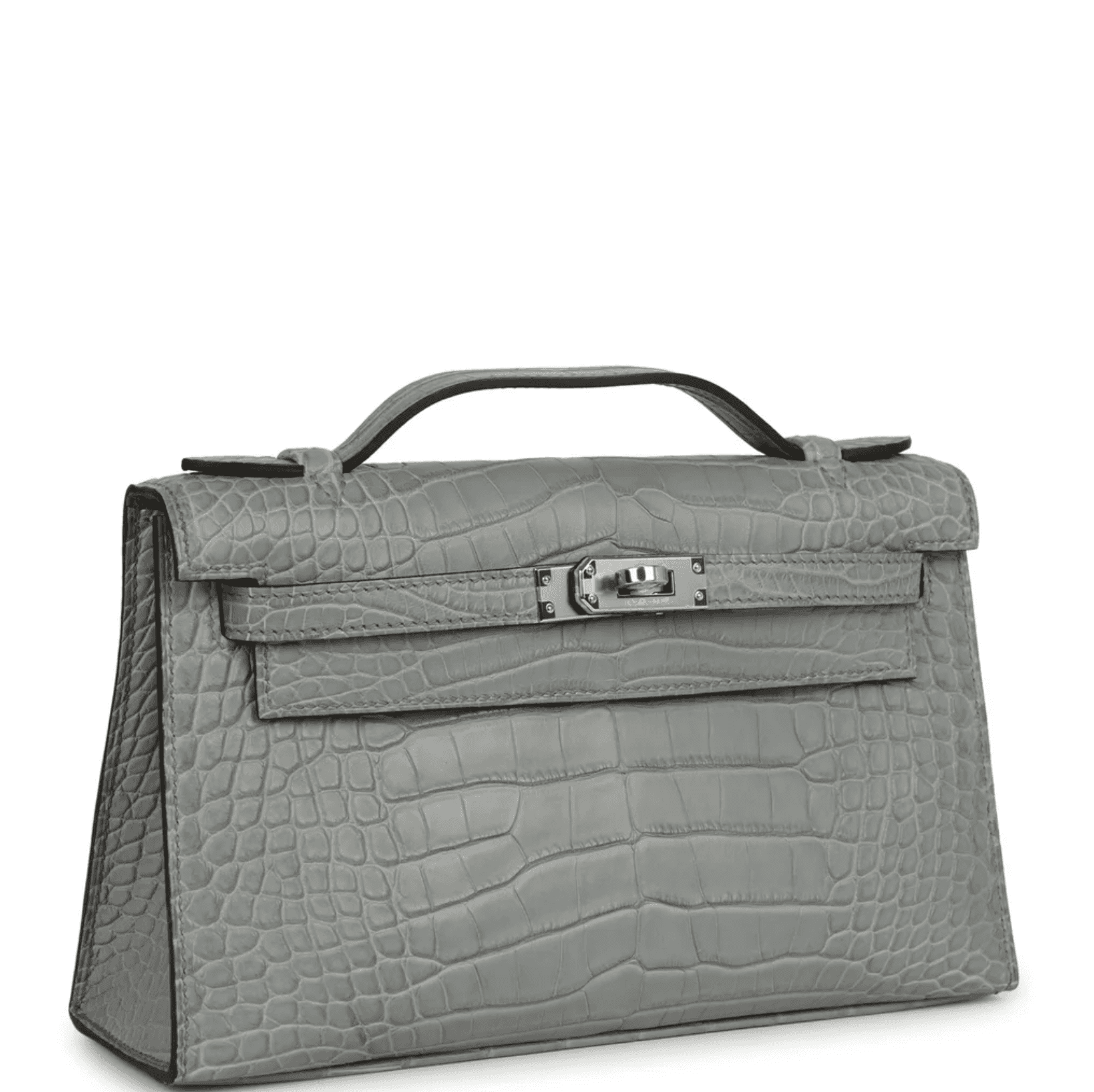 This Kelly Pochette Gris Matte Alligator leather with palladium hardware, tonal stitching, front flap with two straps, toggle closure and single flat handle. Interior is lined in Gris Ciment lambskin leather and has one open slit pocket on the back wall. Collection: K (2025) Origin: France Condition: New and never worn (plastic on hardware) Accompanied by: Hermès box, Hermès dustbag, felt, carebook